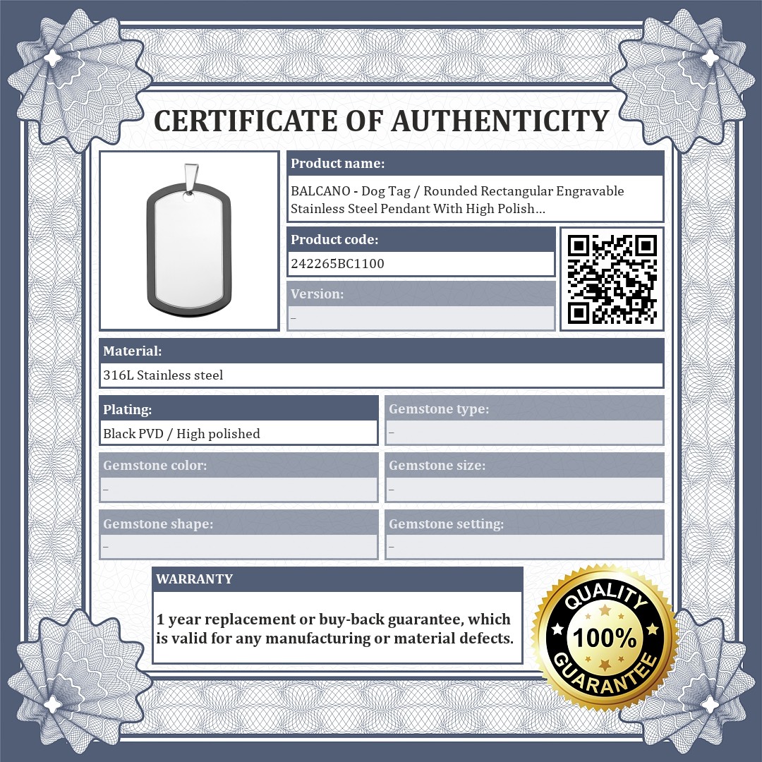 BALCANO - Dog Tag / Rounded Rectangular Engravable Stainless Steel Pendant With High Polish and Black PVD Plated