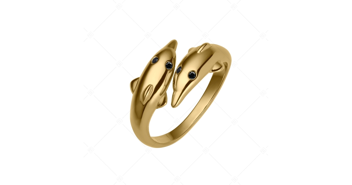 BALCANO - Dolphin / Dolphin Shaped Ring With Zirconia Eyes, 18K Gold Plated