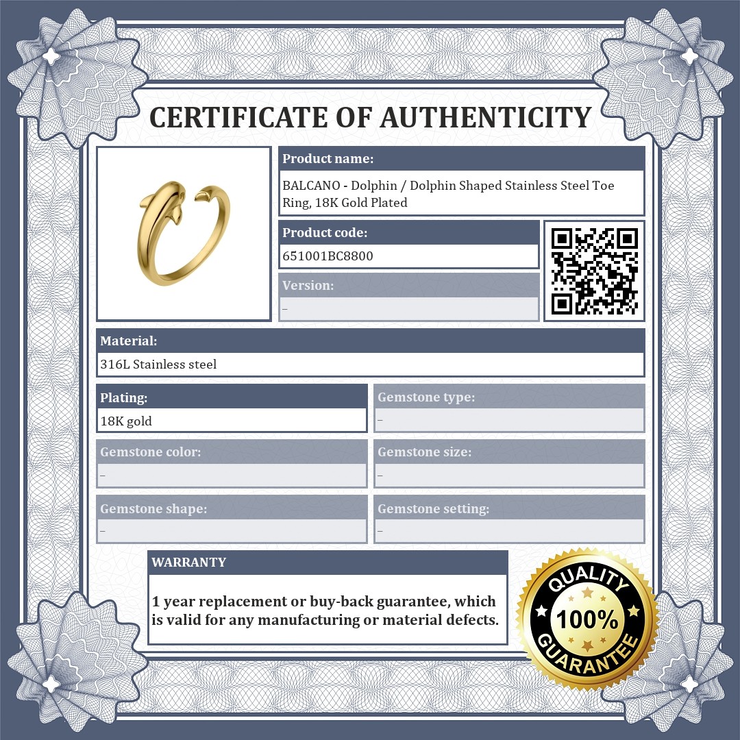 BALCANO - Dolphin / Dolphin Shaped Stainless Steel Toe Ring, 18K Gold Plated