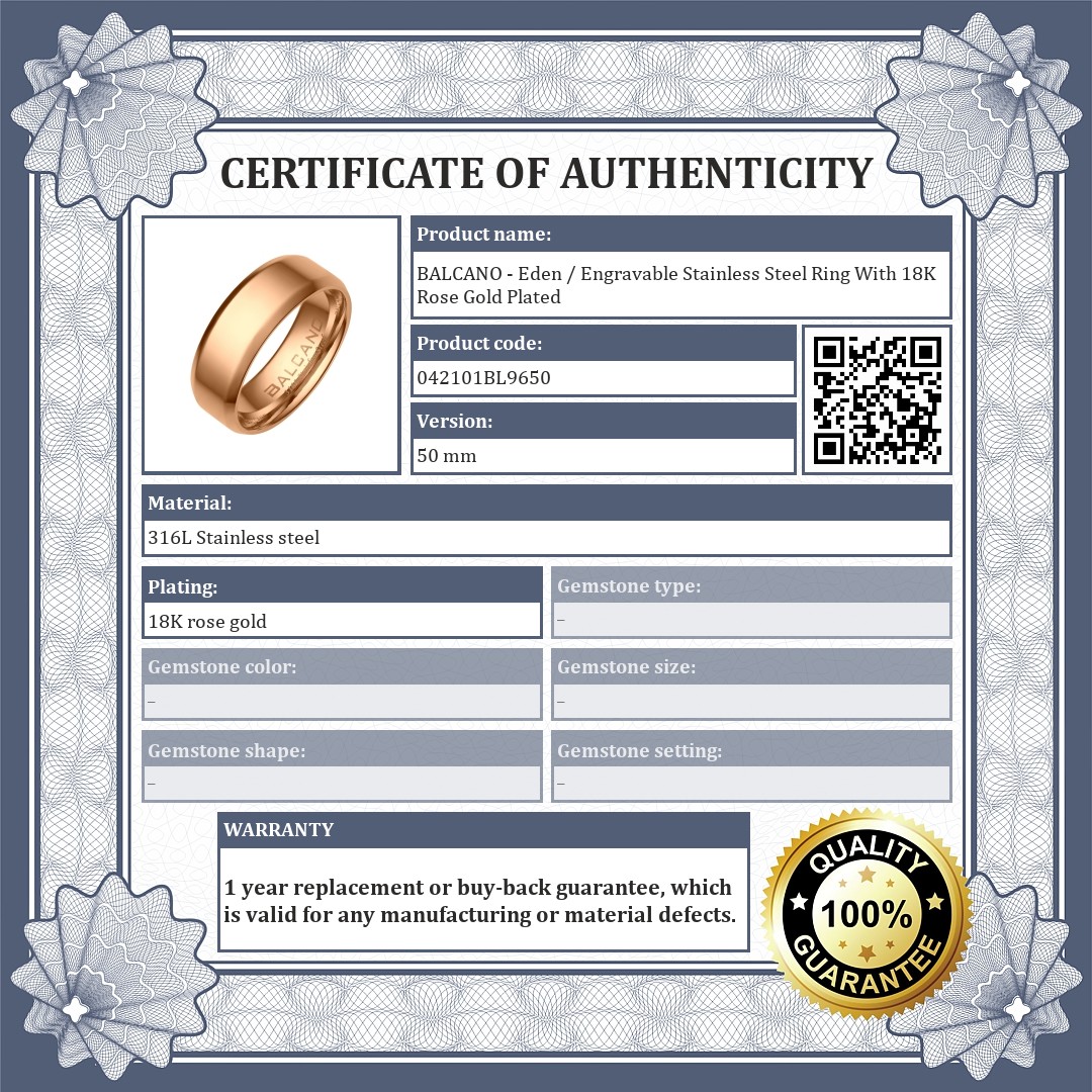 BALCANO - Eden / Engravable Stainless Steel Ring With 18K Rose Gold Plated