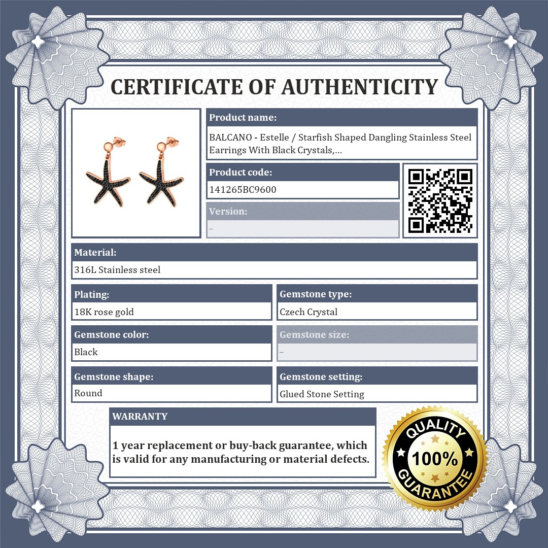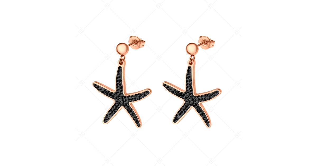 BALCANO - Estelle / Starfish Shaped Dangling Stainless Steel Earrings With Black Crystals, 18K Rose Gold Plated