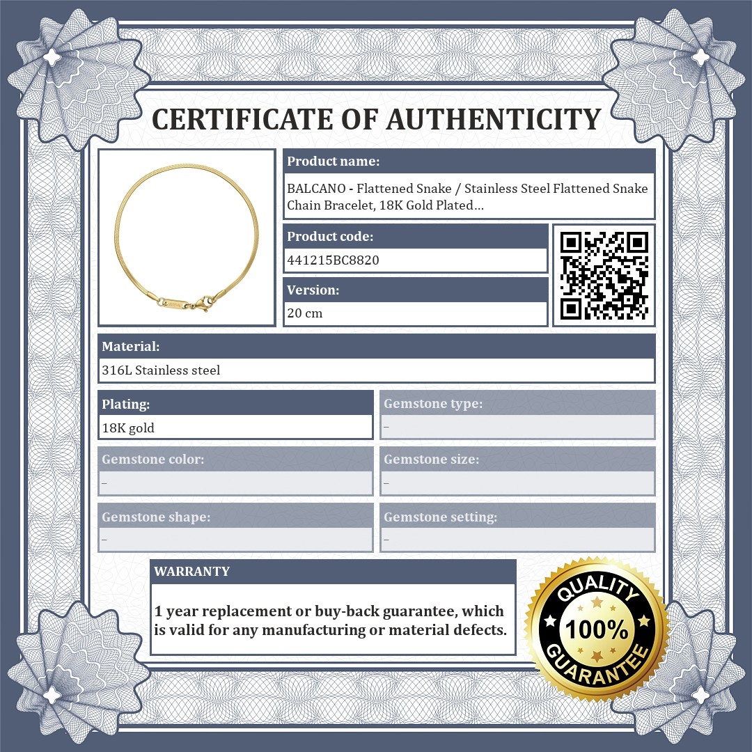 BALCANO - Flattened Snake / Stainless Steel Flattened Snake Chain Bracelet, 18K Gold Plated - 1,9 mm