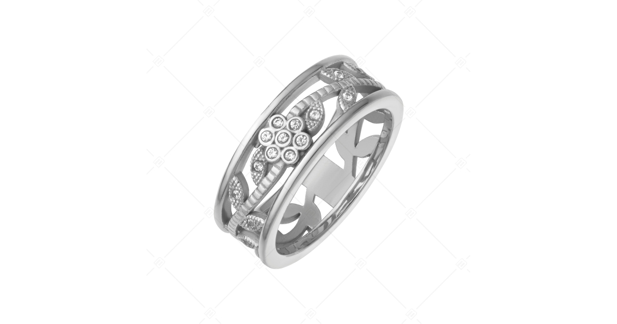 BALCANO - Florenza / Stainless Steel Ring With an Openwork Flower Design and Cubic Zirconia Gemston
