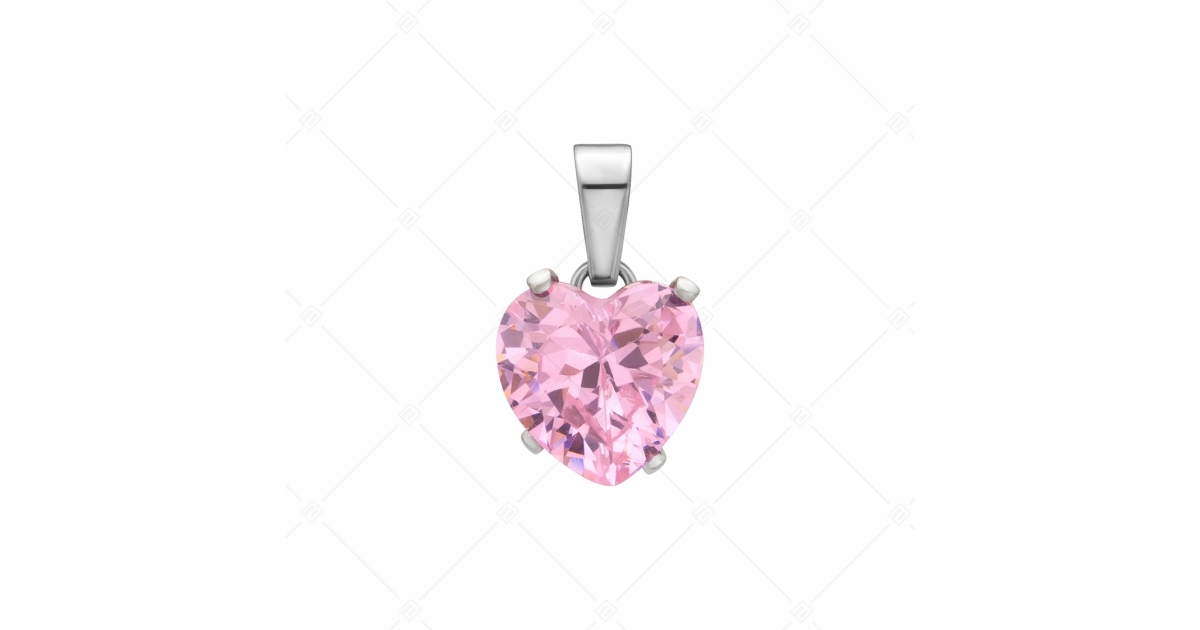 Pink, heart shaped cubic zirconia pendant. 316L medical grade stainless steel jewelry that will not wear or discolour.