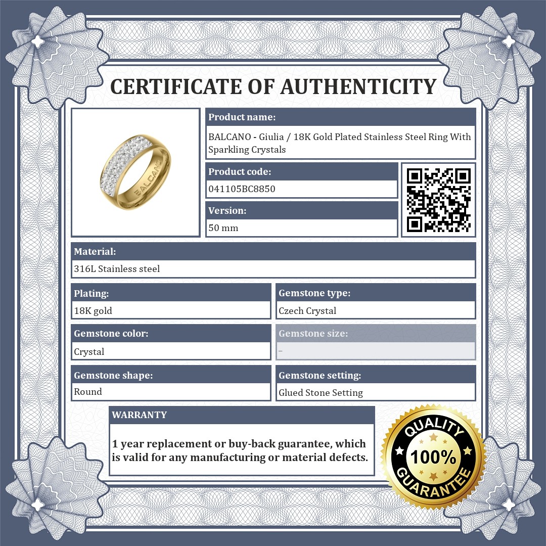 BALCANO - Giulia / 18K Gold Plated Stainless Steel Ring With Sparkling Crystals