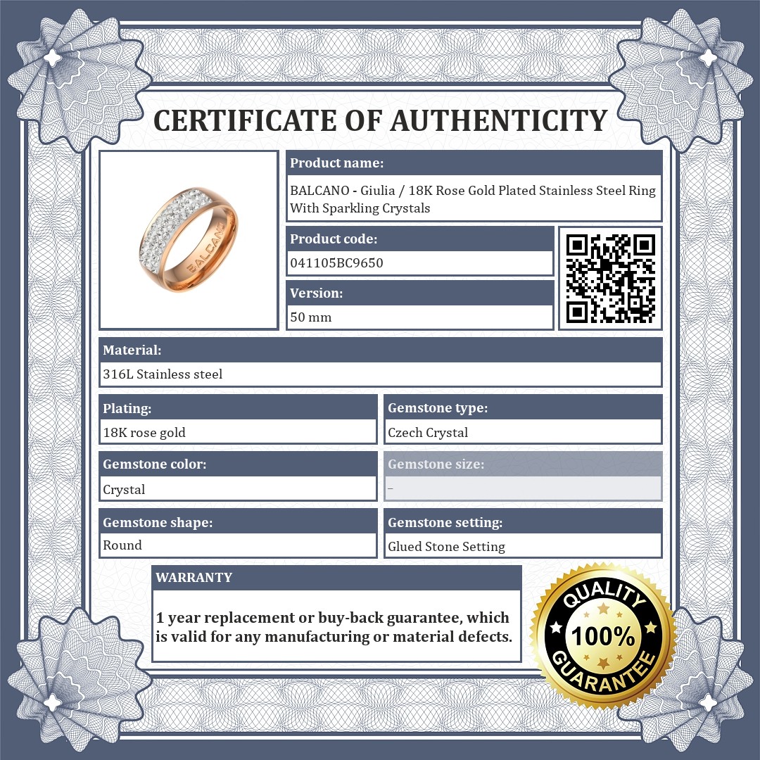 BALCANO - Giulia / 18K Rose Gold Plated Stainless Steel Ring With Sparkling Crystals