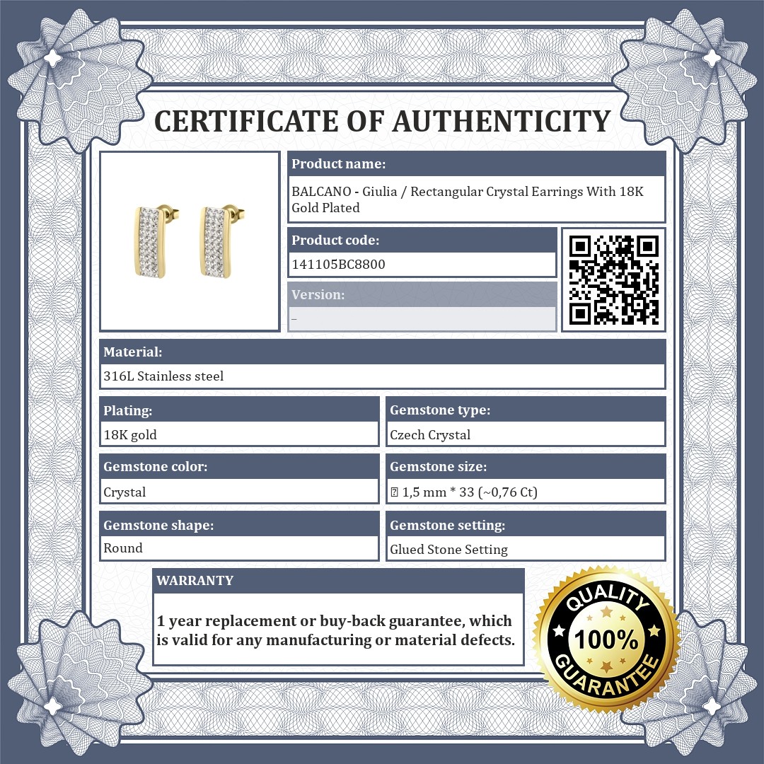 BALCANO - Giulia / Rectangular Crystal Earrings With 18K Gold Plated