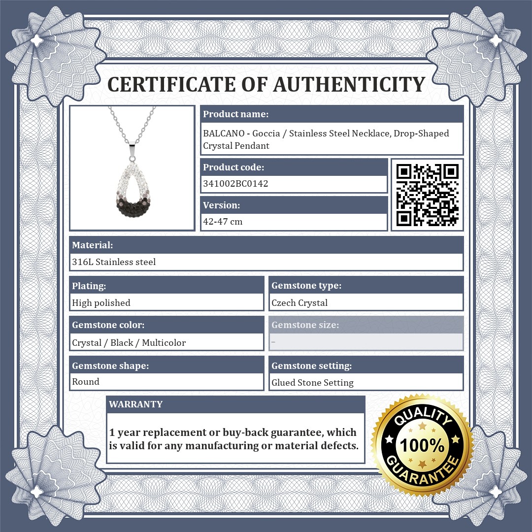 BALCANO - Goccia / Stainless Steel Necklace, Drop-Shaped Crystal Pendant