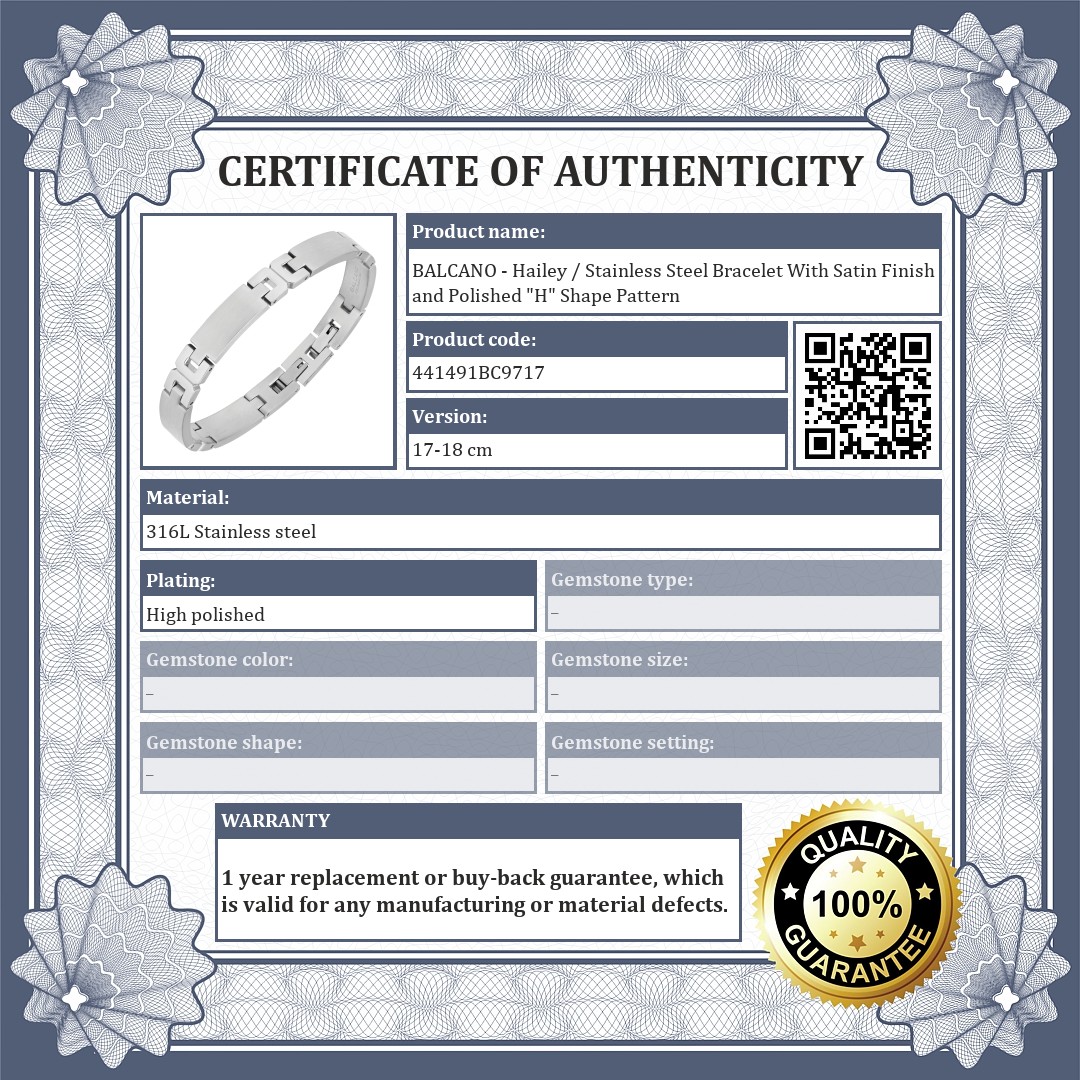 BALCANO - Hailey / Stainless Steel Bracelet With Satin Finish and Polished "H" Shape Pattern