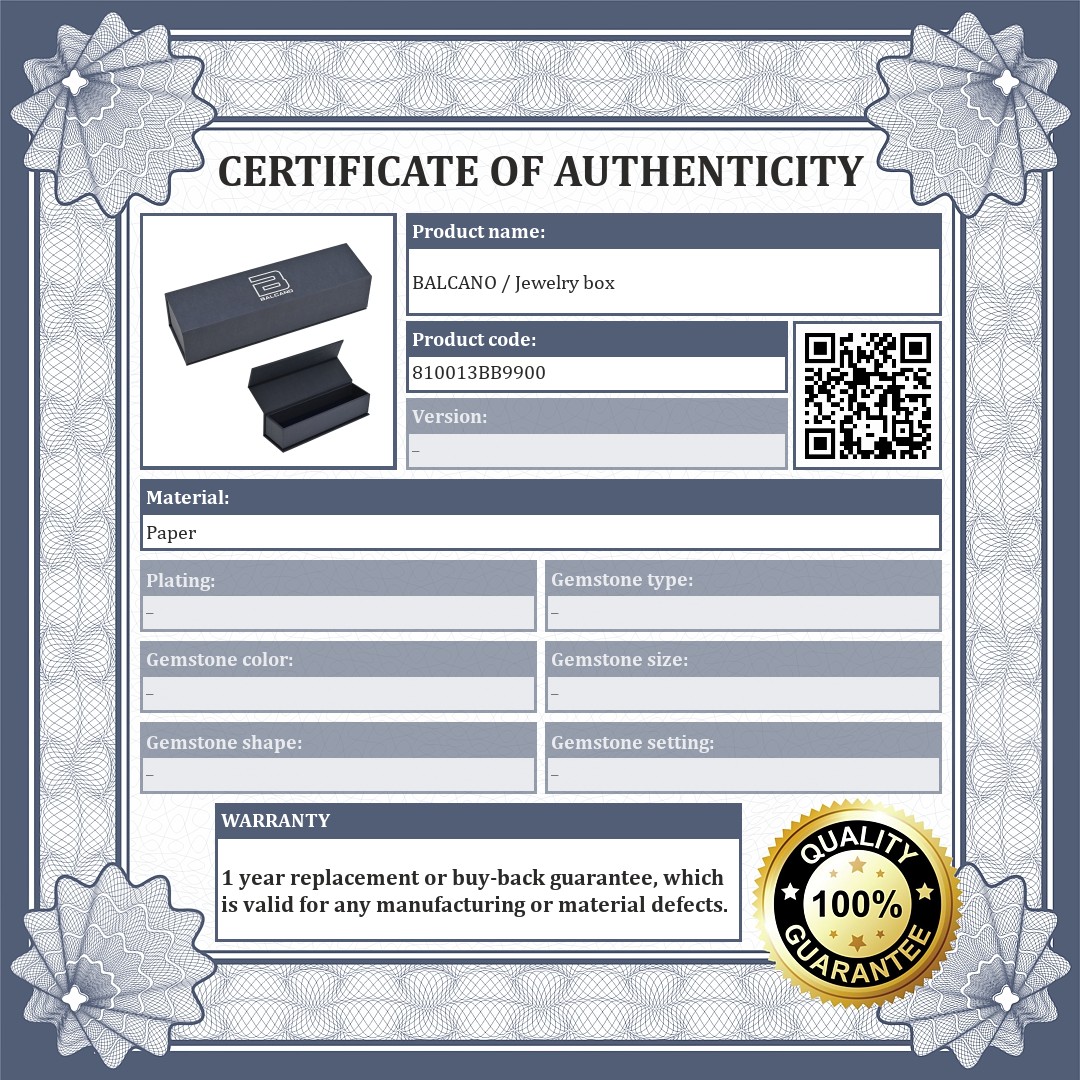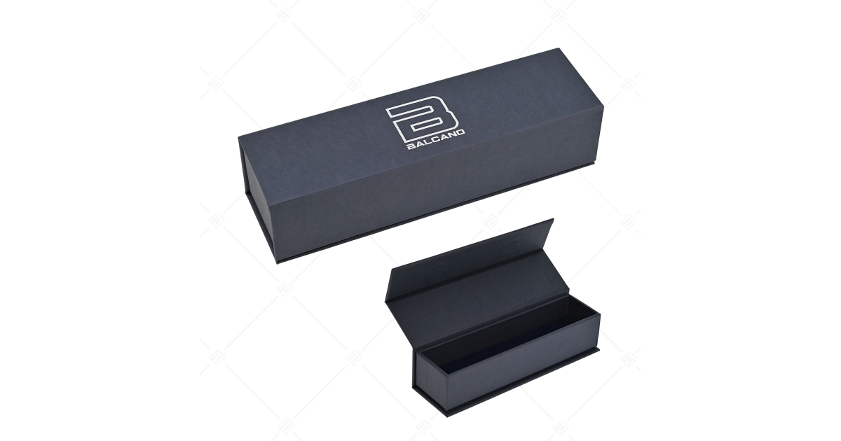 High quality magnetic lock jewelry box with silver BALCANO logo on the lid and grey sponge insert with navy blue velvet coating. Inside dimensions 152 x 35 mm. It is suitable for safe and aesthetic storage of bracelets and necklaces. Available as a gift box on its own or with individual gift wrapping.