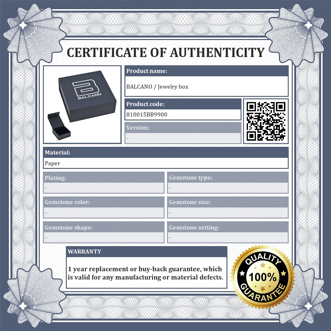 High quality magnetic lock jewelry box with silver BALCANO logo on the lid and grey sponge insert with navy blue velvet coating. Inside dimensions 92 x 92 mm. It is suitable for safe and aesthetic storage of bracelets, necklaces and other larger jewelry. Available as a gift box on its own or with individual gift wrapping.