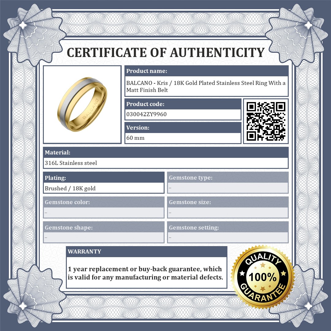 Anti-allergy 316L stainless steel ring, with a matt finish belt with high polish and 18K gold plated. Fashionable and elegant jewelry. The rounded, smooth inner design makes it extremely comfortable to wear.