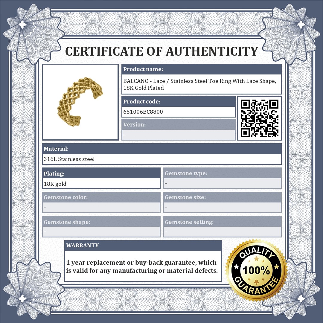BALCANO - Lace / Stainless Steel Toe Ring With Lace Shape, 18K Gold Plated