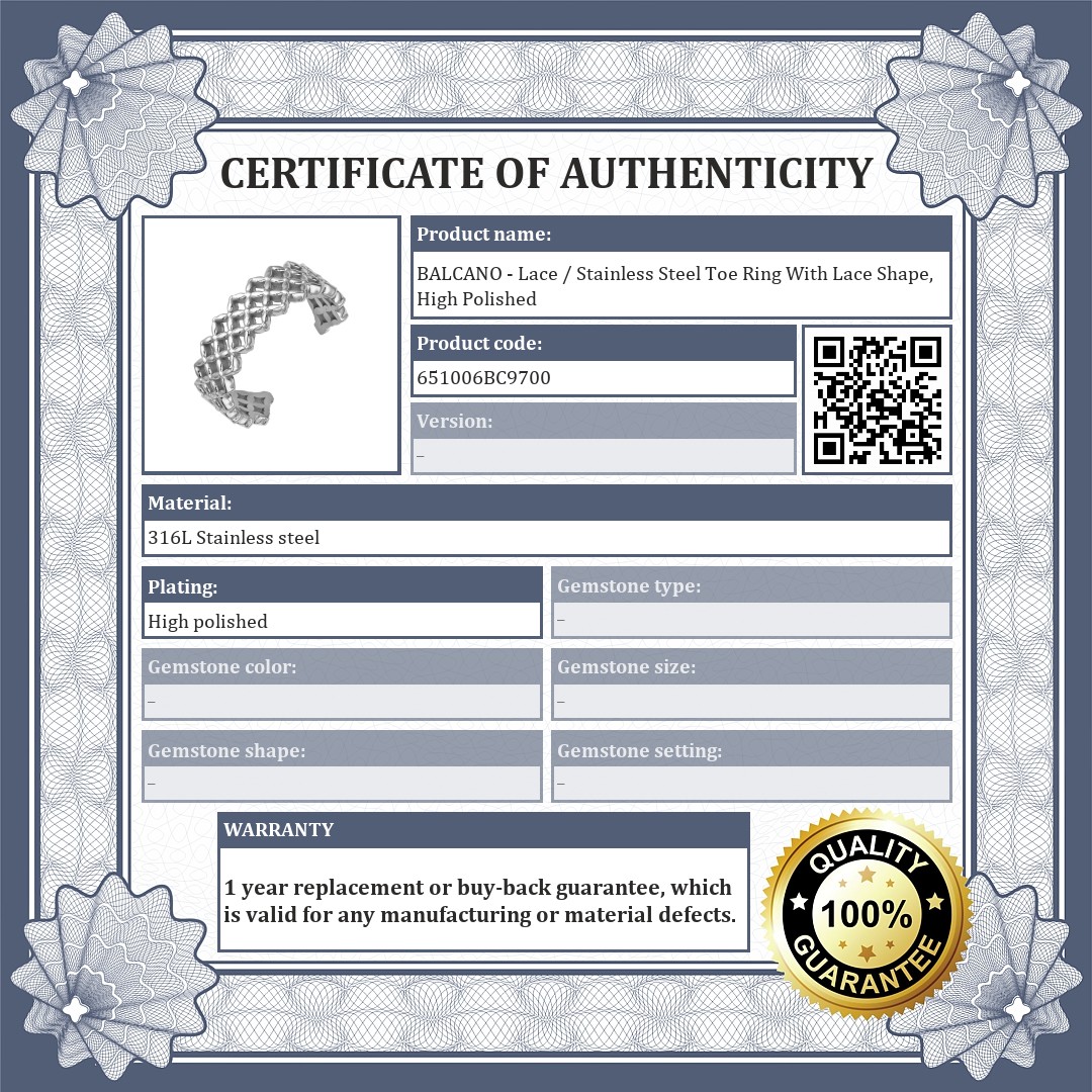 BALCANO - Lace / Stainless Steel Toe Ring With Lace Shape, High Polished