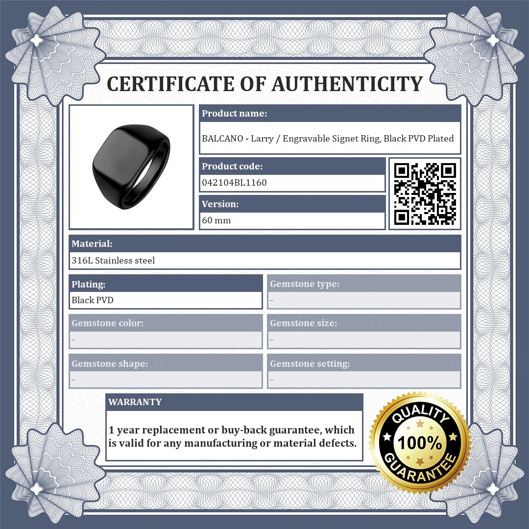 BALCANO - Larry / Engravable Signet Ring, Black PVD Plated