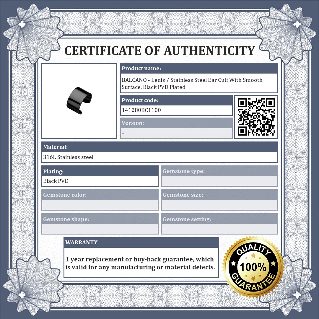 Ear cuff without pattern made of smooth surface material with high polish and black PVD plated. Fashionable and comfortable wear at the same time. The material is hypoallergenic 316L medical stainless steel. It can be a stylish addition to an existing pair of earrings, but you can also choose additional matching jewelry from the huge selection of the BALCANO webshop. No ear holes are required.