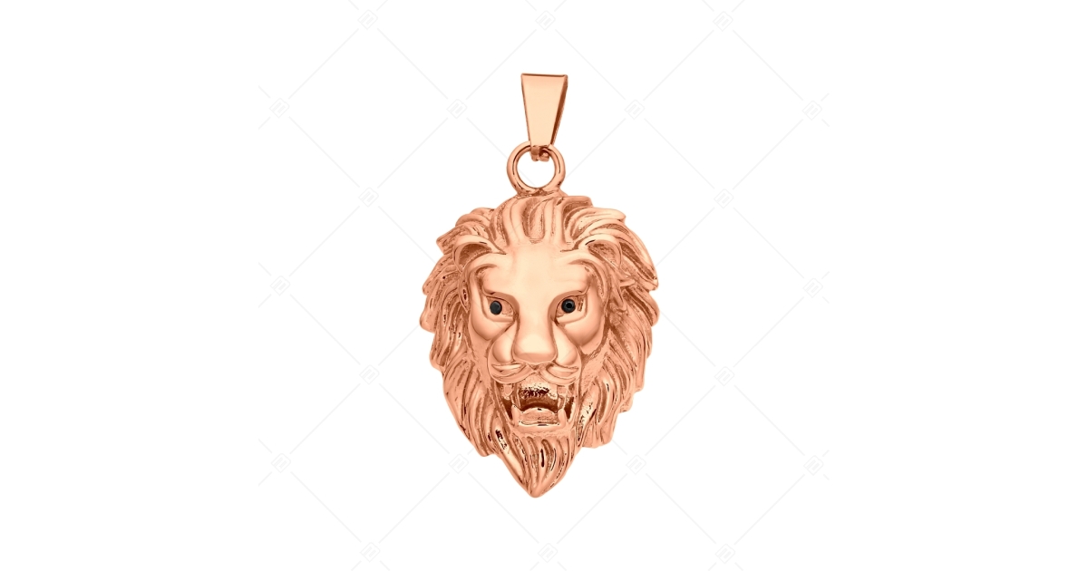Lion head pendant in 316L medical stainless steel with 18K rose gold plated finish.
