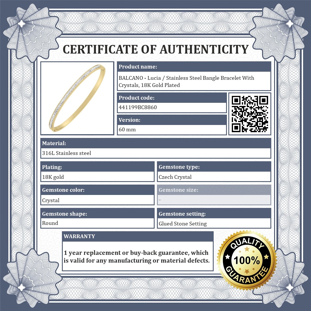 BALCANO - Lucia / Stainless Steel Bangle Bracelet With Crystals, 18K Gold Plated
