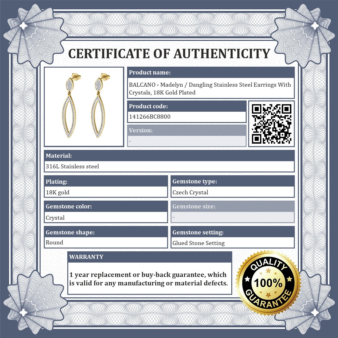 BALCANO - Madelyn / Dangling Stainless Steel Earrings With Crystals, 18K Gold Plated