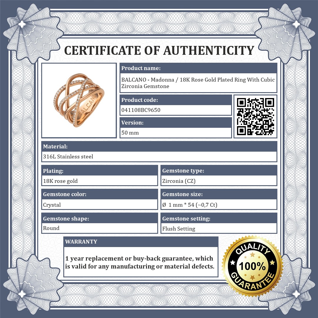 BALCANO - Madonna / 18K Rose Gold Plated Ring With Cubic Zirconia Gemstone