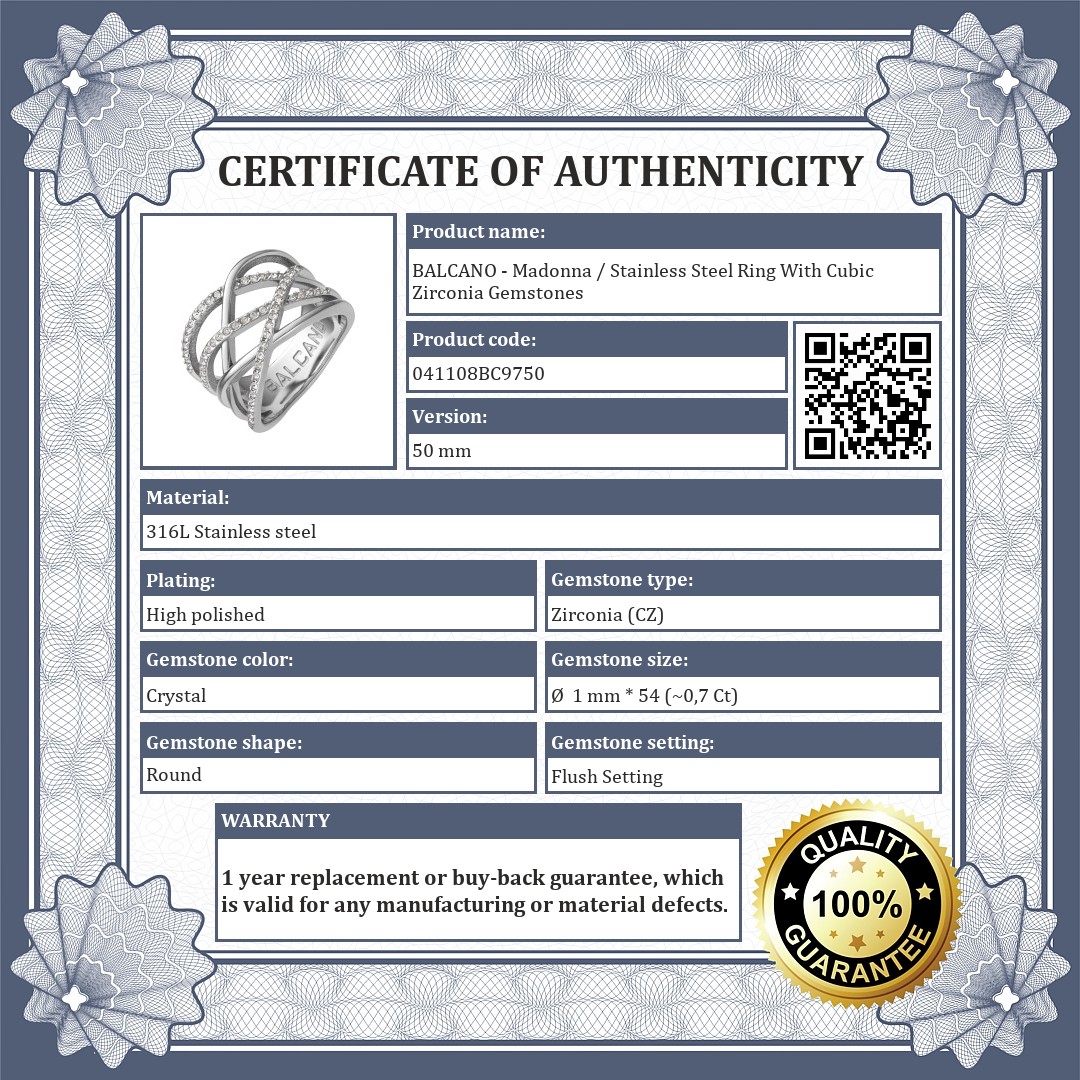 BALCANO - Madonna / Stainless Steel Ring With Cubic Zirconia Gemstones