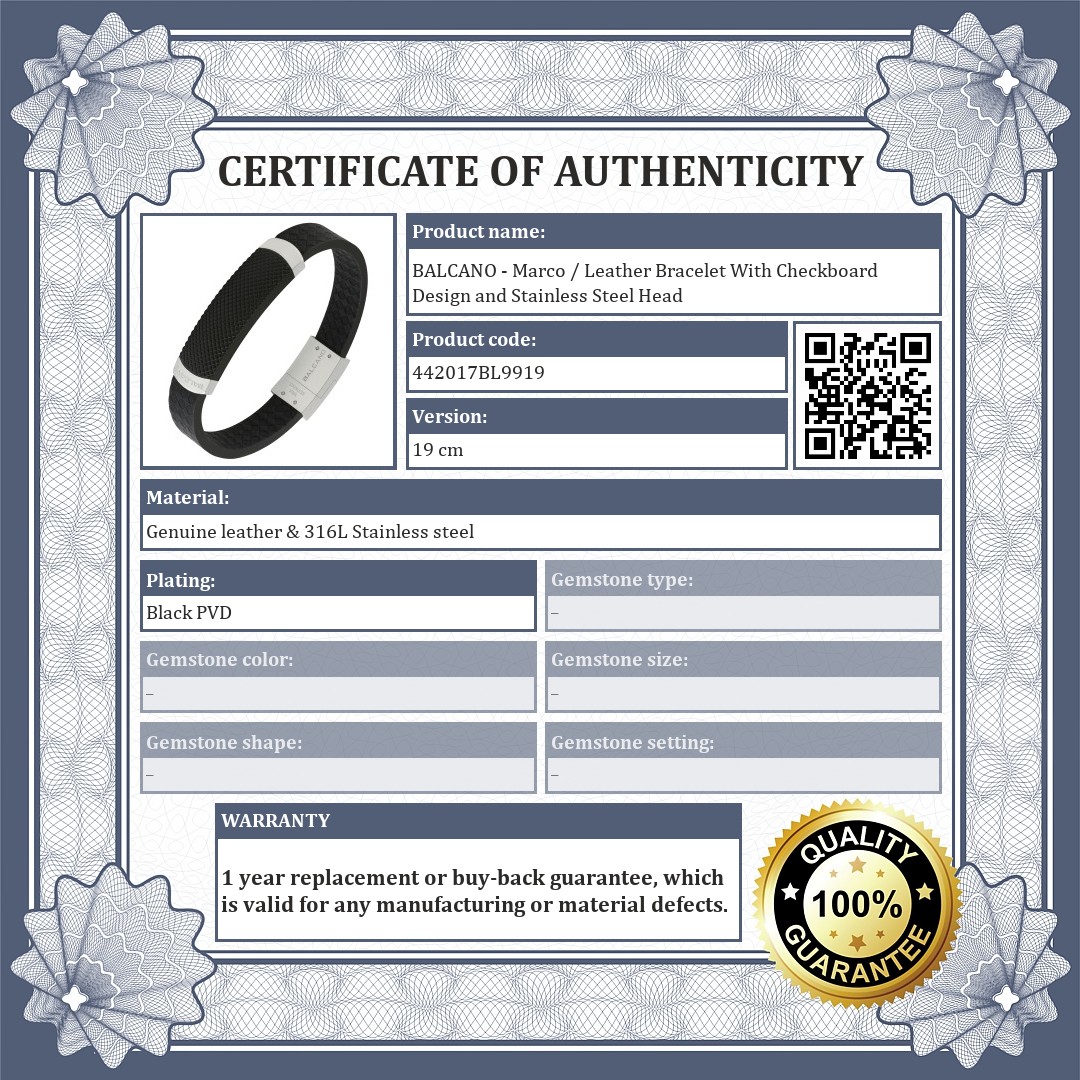 BALCANO - Marco / Leather Bracelet With Checkboard Design and Stainless Steel Head (442017BL99)