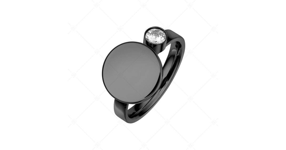 BALCANO - Mila / Engravable Ring With Zirconia Gemstone, Black PVD Plated