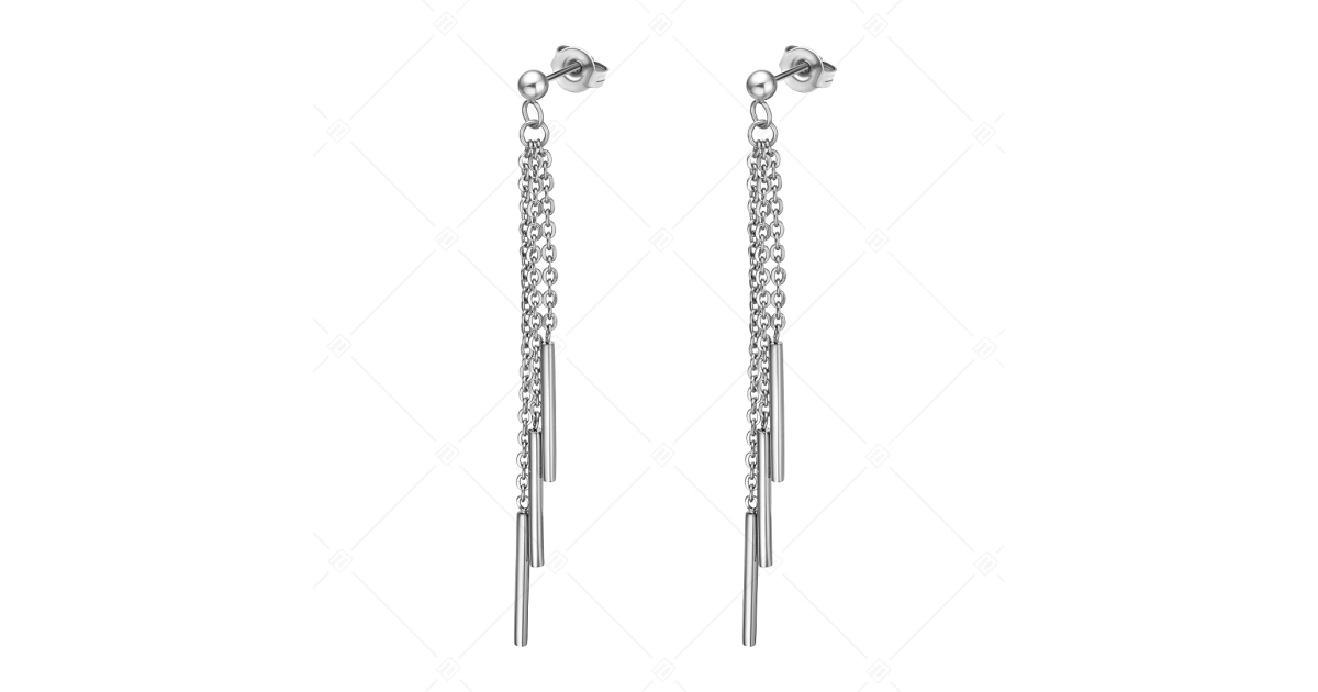 Long, chain dangling 316L stainless steel earrings with small ball top and high polished. Anti-allergy jewelry so anyone can wear it safely. Thanks to its material it will not discolour or wear out. Strikingly unique and elegant jewelry for any occasion.