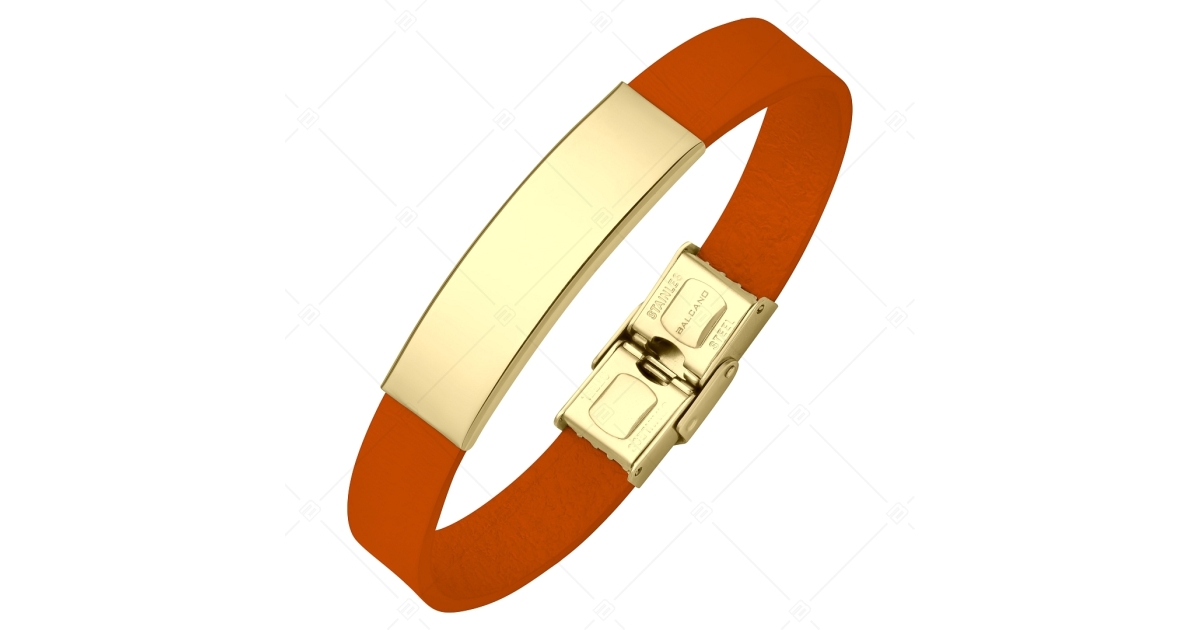 BALCANO - Orange Leather Bracelet With Engravable Rectangular 18K Gold Plated Stainless Steel Headpiece