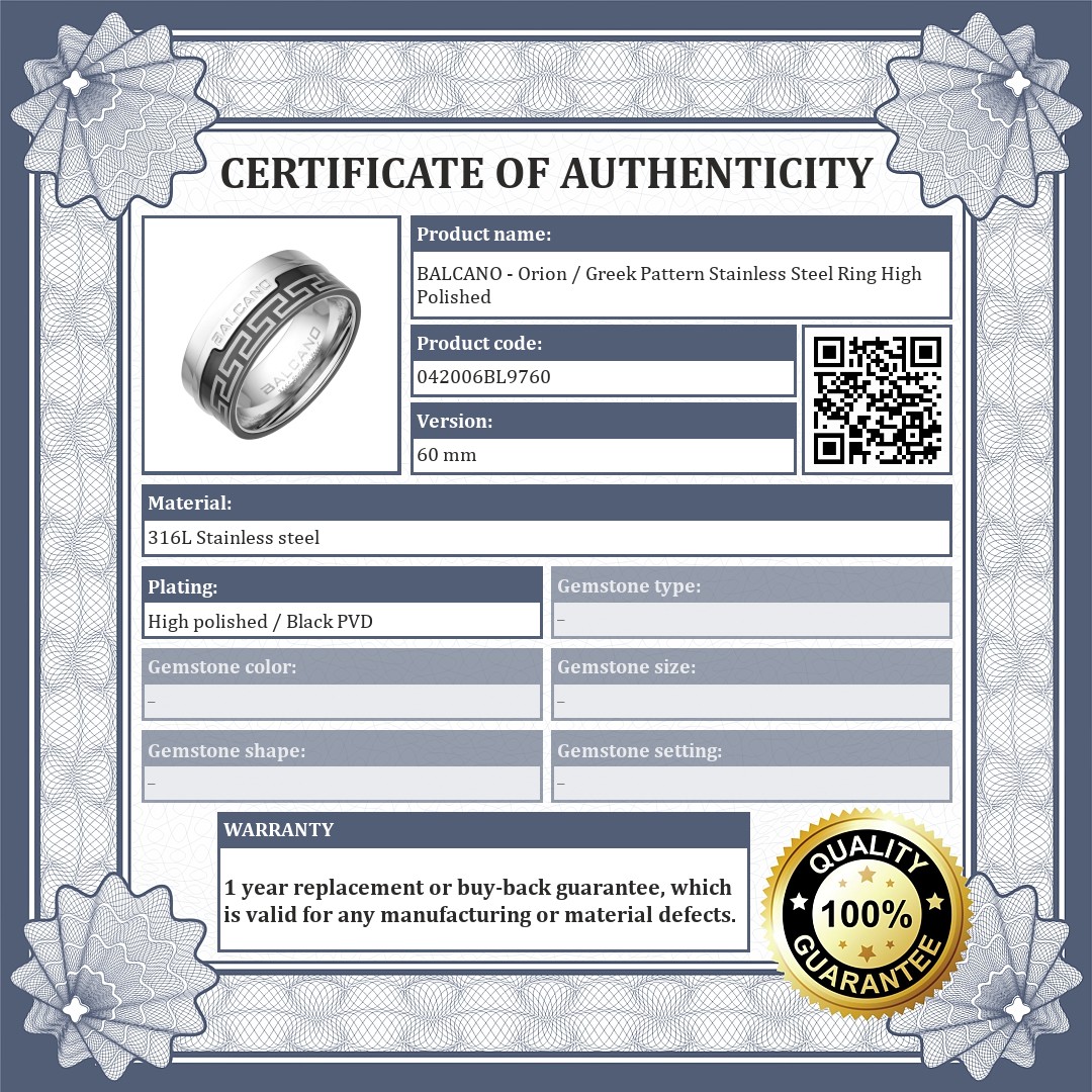 BALCANO - Orion / Greek Pattern Stainless Steel Ring High Polished