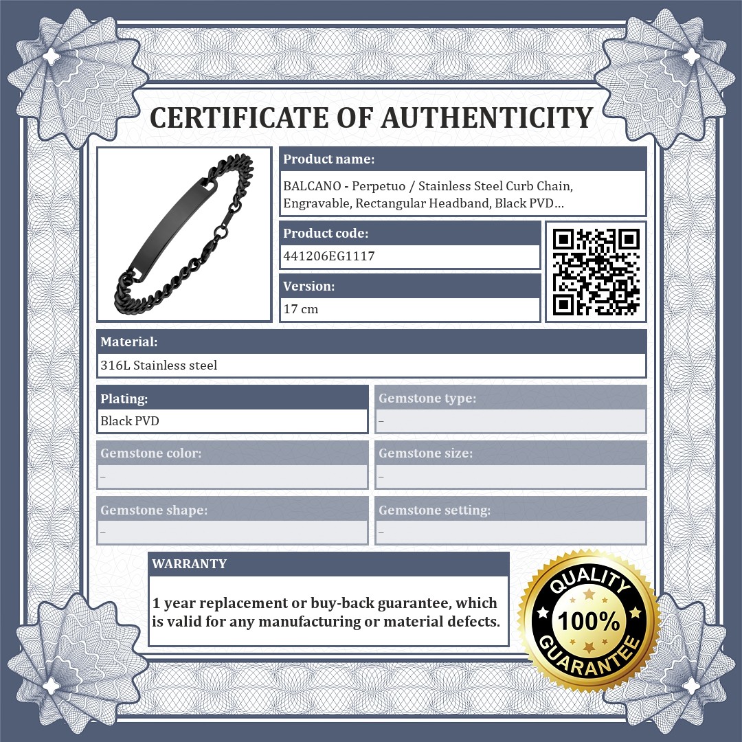 BALCANO - Perpetuo / Stainless Steel Curb Chain, Engravable, Rectangular Headband, Black PVD Plated - 8 mm