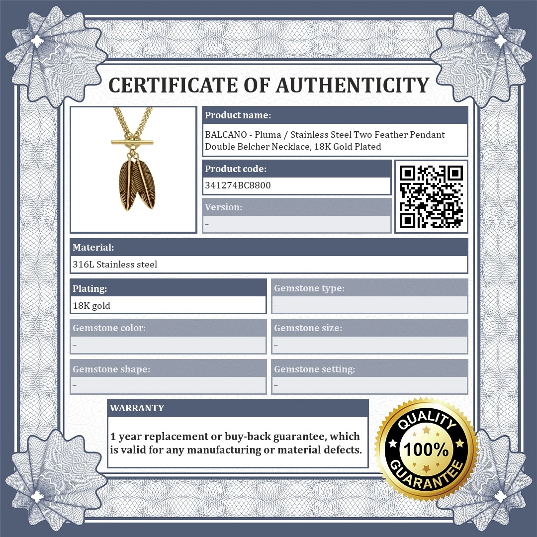 BALCANO - Pluma / Stainless Steel Two Feather Pendant Double Belcher Necklace, 18K Gold Plated