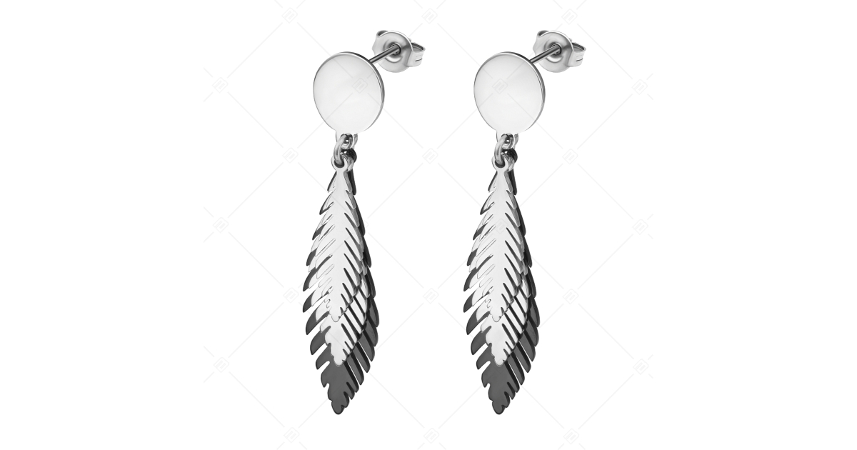 BALCANO - Pluma / Two Coloured Bird Feather Dangling Stainless Steel Earrings