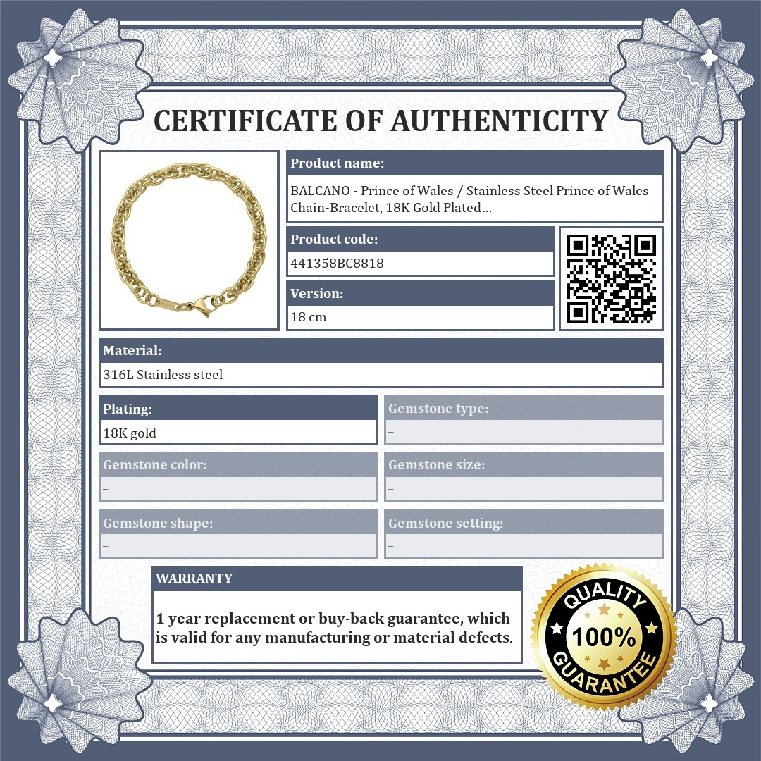 BALCANO - Prince of Wales / Stainless Steel Prince of Wales Chain-Bracelet, 18K Gold Plated - 6 mm