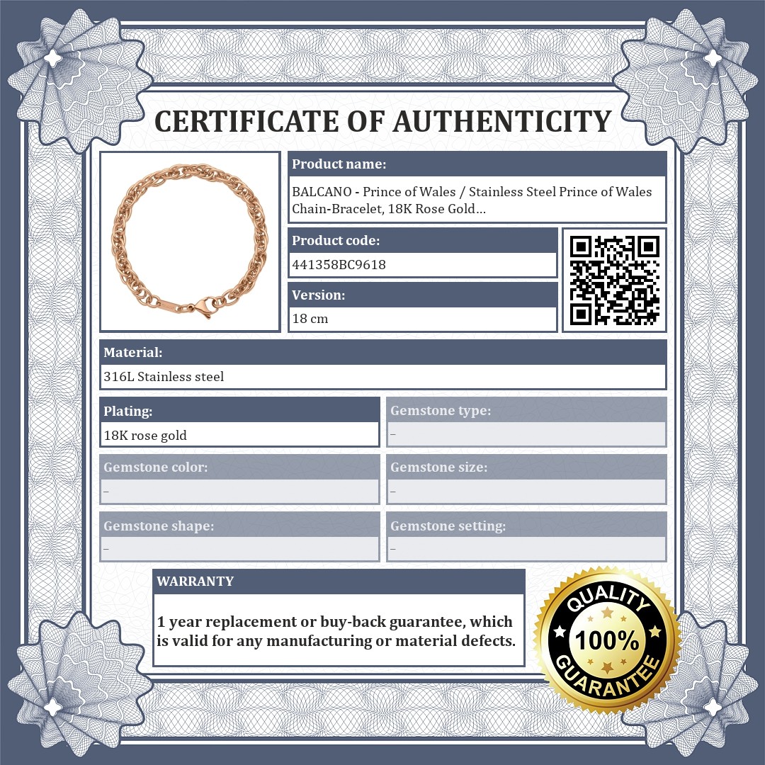 BALCANO - Prince of Wales / Stainless Steel Prince of Wales Chain-Bracelet, 18K Rose Gold Plated - 6 mm