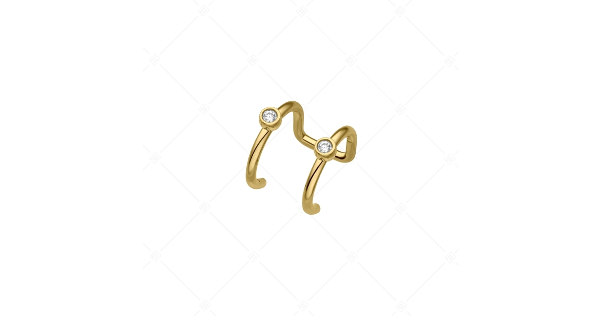 BALCANO - Rua / Stainless Steel Double Ear Cuff With Zirconia Gemstones, 18K Gold Plated