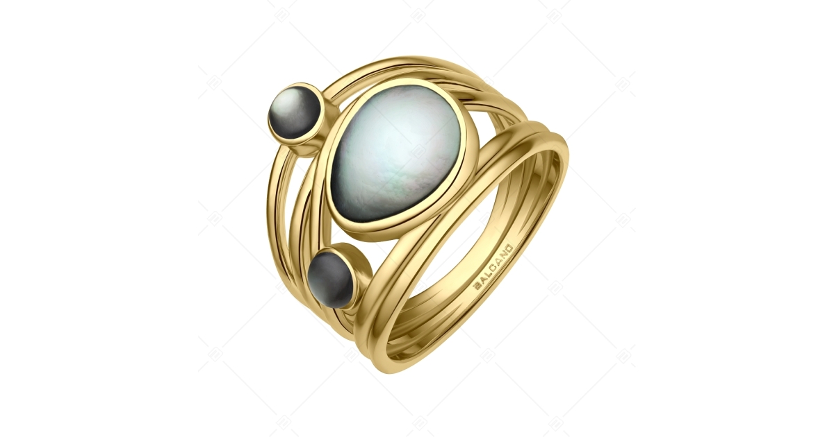 BALCANO - Sabine / Unique Stainless Steel Ring With Mother Of Pearl Decoration And 18K Gold Plated