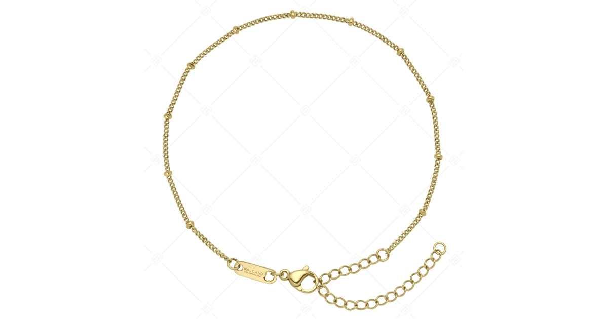 Anti-allergy, medical 316L stainless steel, beaded curb chain anklet. 18K gold plated, premium quality Saturn chain. A fashionable accessory that can be perfectly combined with other BALCANO jewelry.