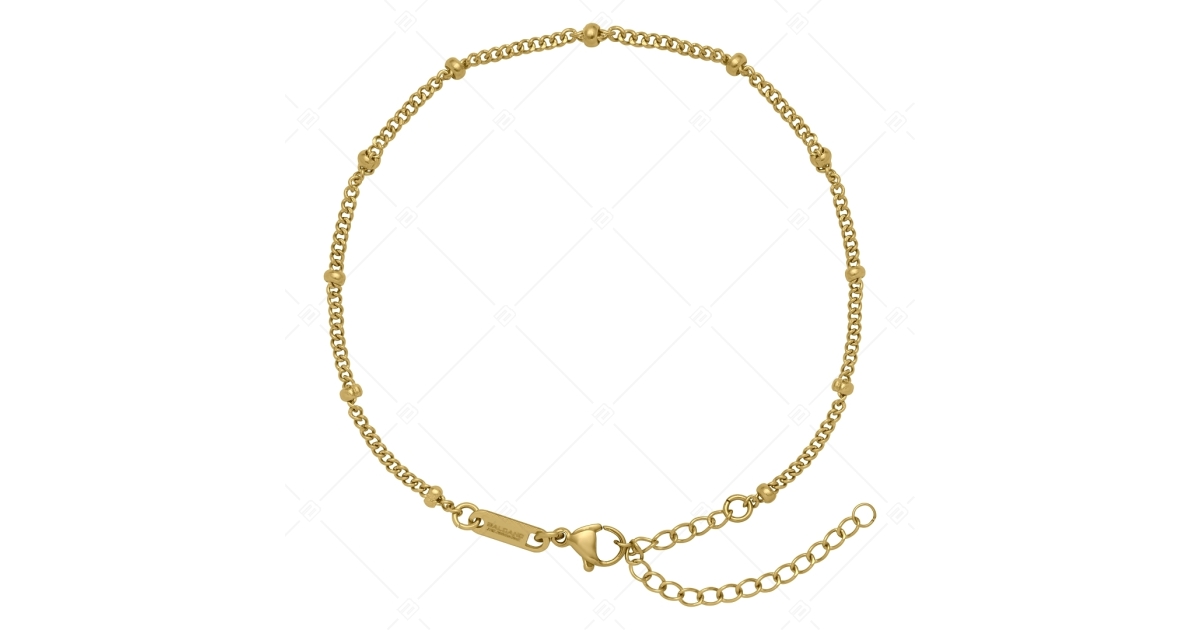 Anti-allergy, medical 316L stainless steel, beaded curb chain anklet. 18K gold plated, premium quality Saturn chain. A fashionable accessory that can be perfectly combined with other BALCANO jewelry.