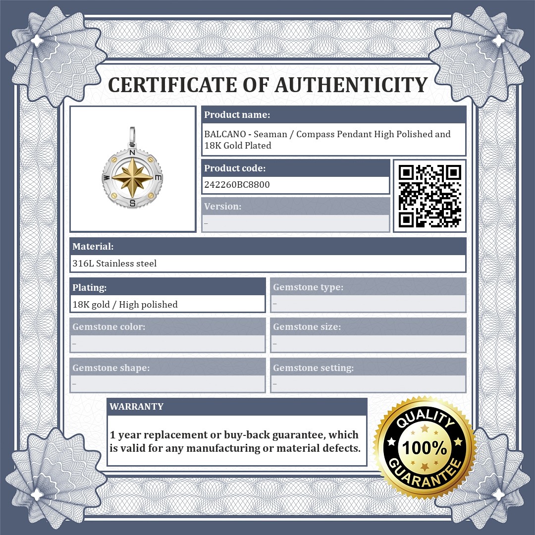 BALCANO - Seaman / Compass Pendant High Polished and 18K Gold Plated