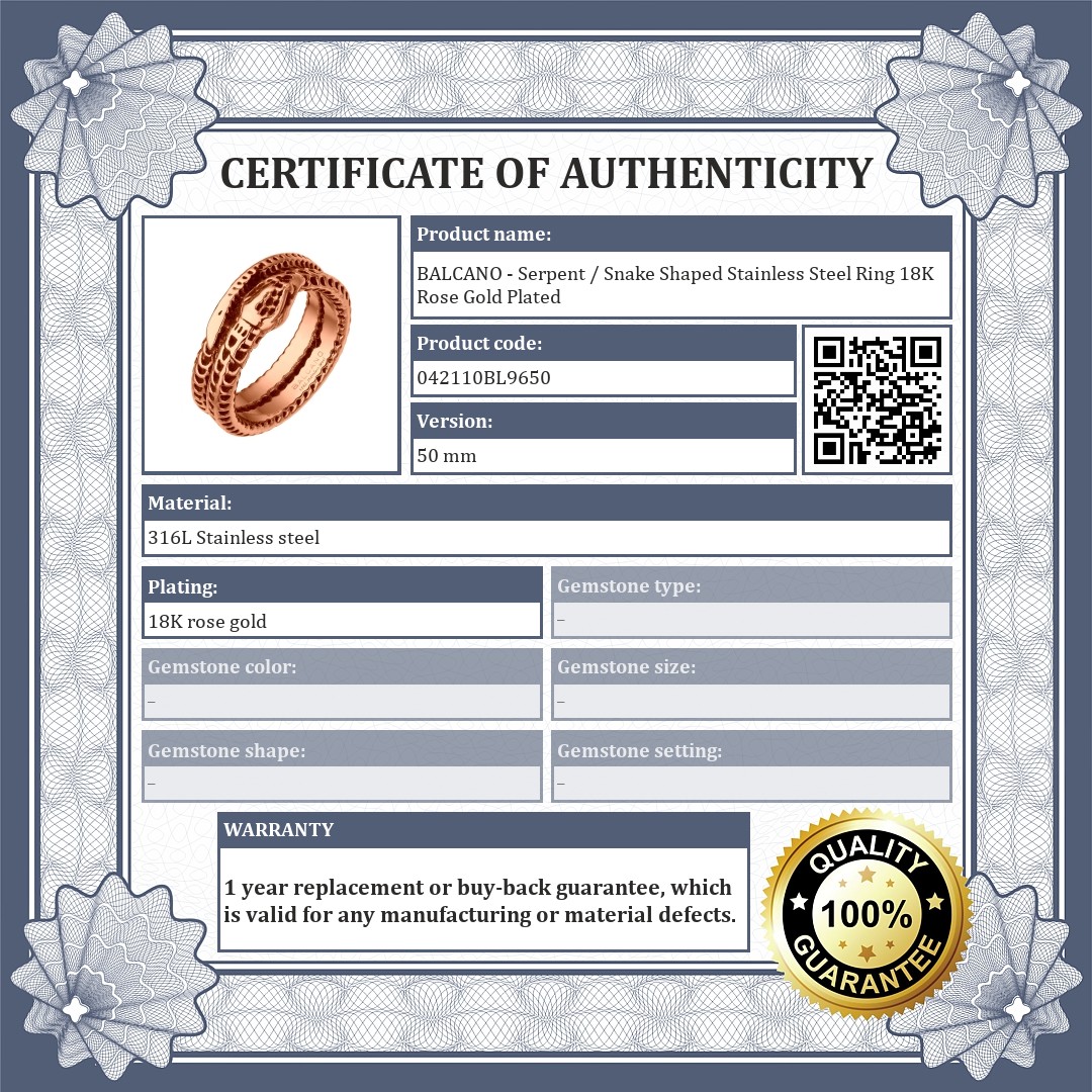 BALCANO - Serpent / Snake Shaped Stainless Steel Ring 18K Rose Gold Plated