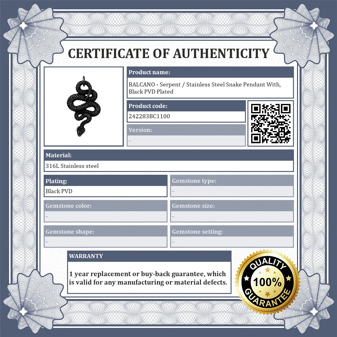 BALCANO - Serpent / Stainless Steel Snake Pendant With, Black PVD Plated