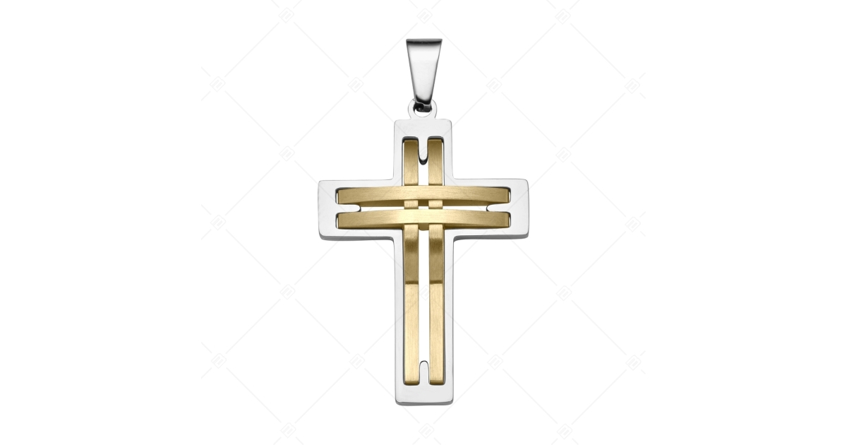 Premium quality, 316L medical grade stainless steel pendant in silver colour with openwork cross shape and brushed, matt 18K gold plated in the middle. High polish finish, extremely durable. The pendant is also available in a set with several BALCANO chains in our webshop.