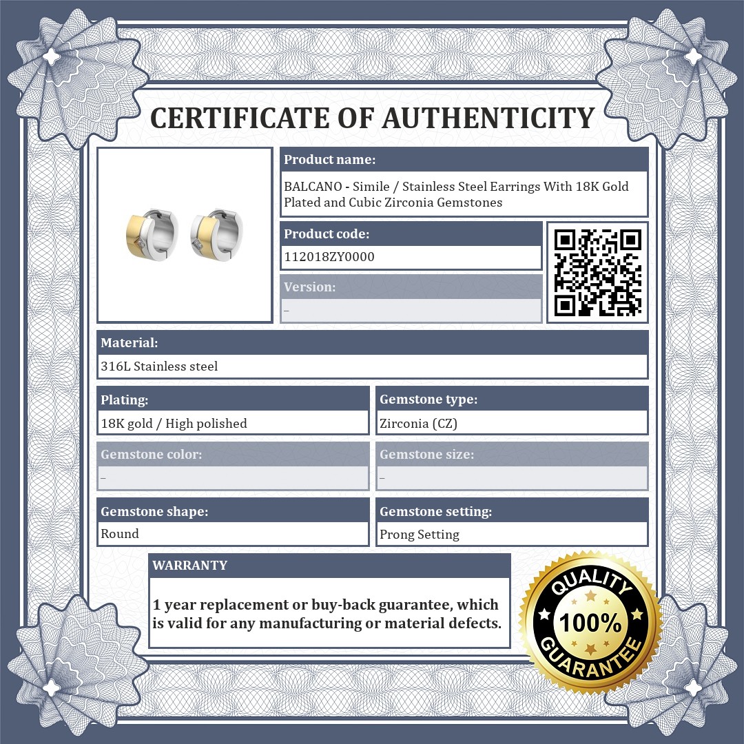BALCANO - Simile / Stainless Steel Earrings With 18K Gold Plated and Cubic Zirconia Gemstones