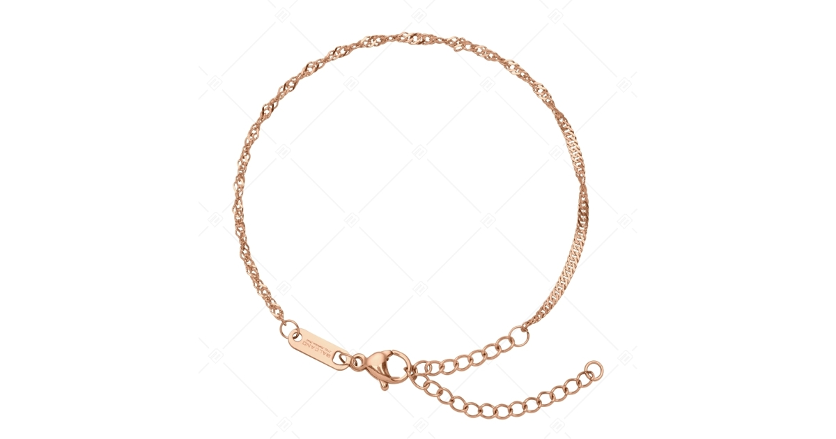 Singapore chain bracelet, 18K rose gold plated. Anti-allergy, 316L medical grade stainless steel jewelry. Due to its high quality, it will not tarnish or rust during normal use.