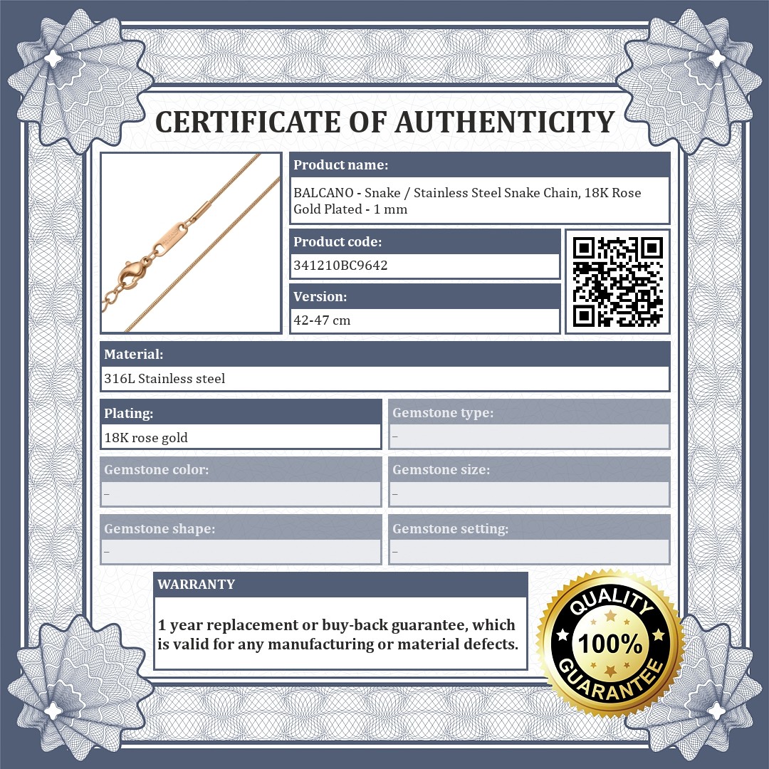 BALCANO - Snake / Stainless Steel Snake Chain, 18K Rose Gold Plated - 1 mm