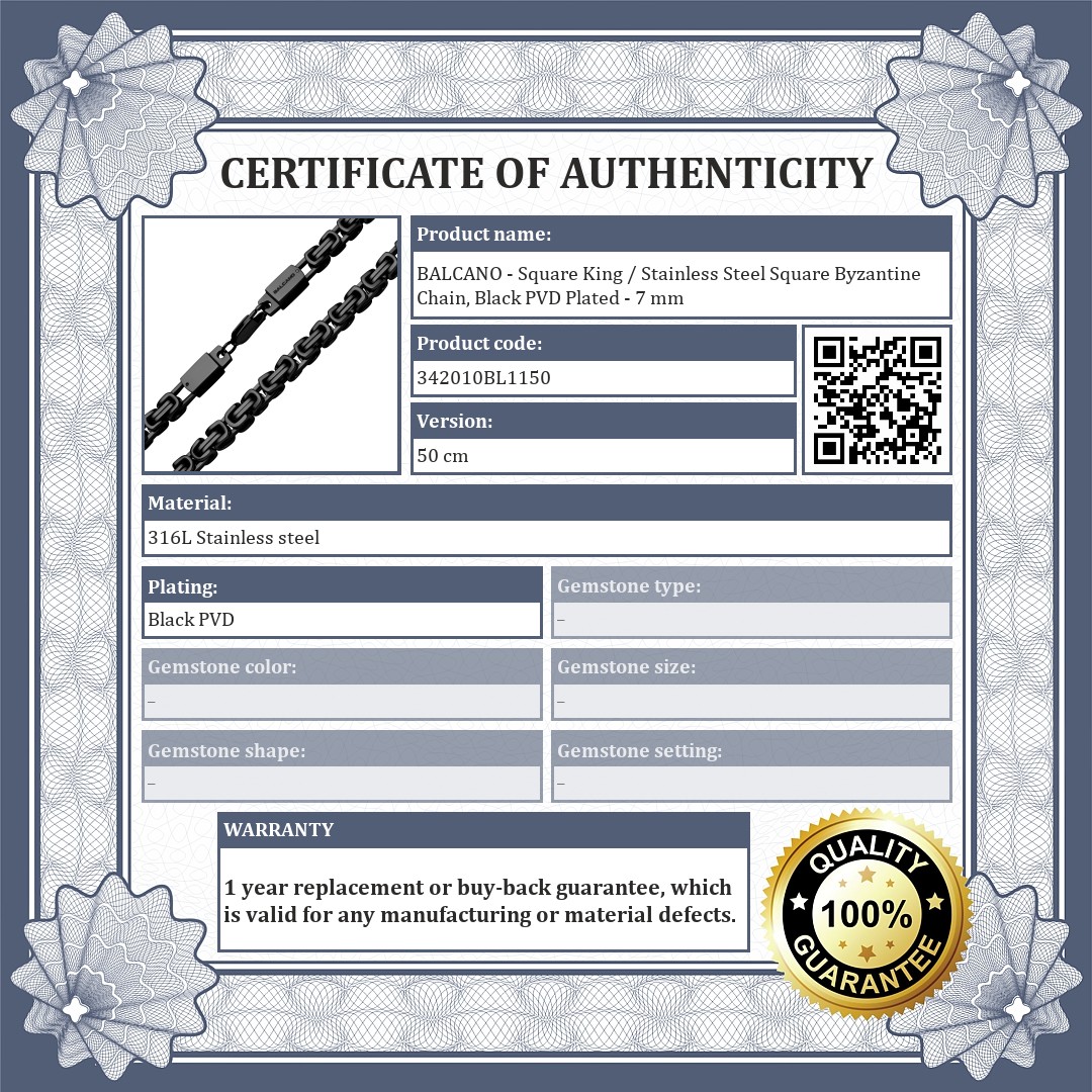 BALCANO - Square King / Stainless Steel Square Byzantine Chain, Black PVD Plated - 7 mm