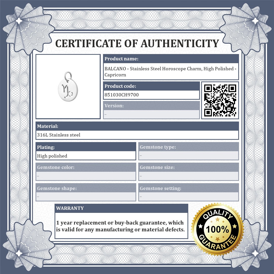 BALCANO - Stainless Steel Horoscope Charm, High Polished - Capricorn