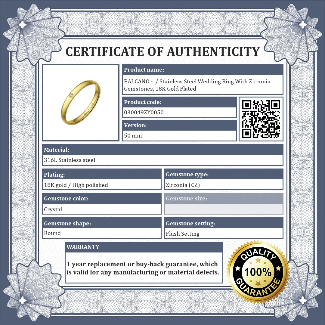 BALCANO - / Stainless Steel Wedding Ring With Zirconia Gemstones, 18K Gold Plated
