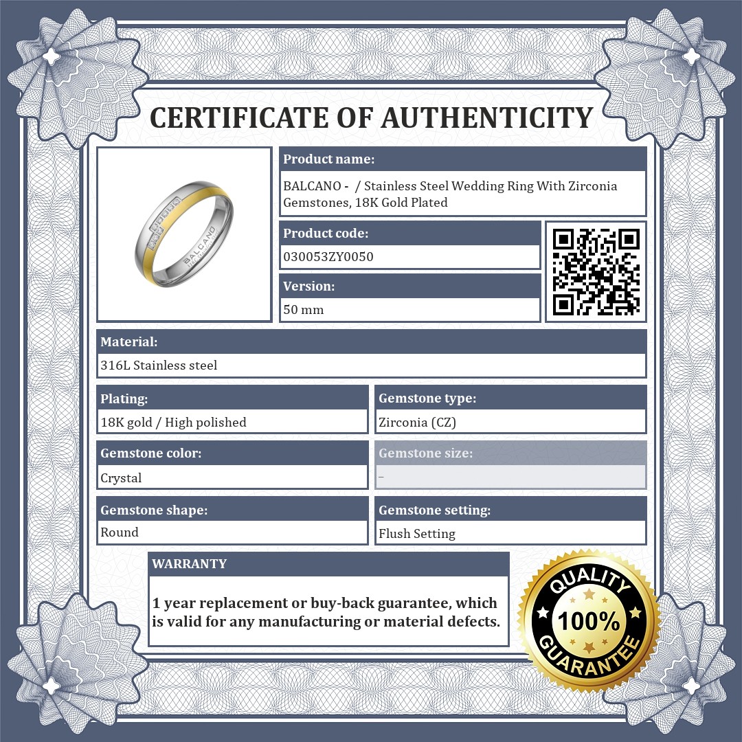 BALCANO - / Stainless Steel Wedding Ring With Zirconia Gemstones, 18K Gold Plated